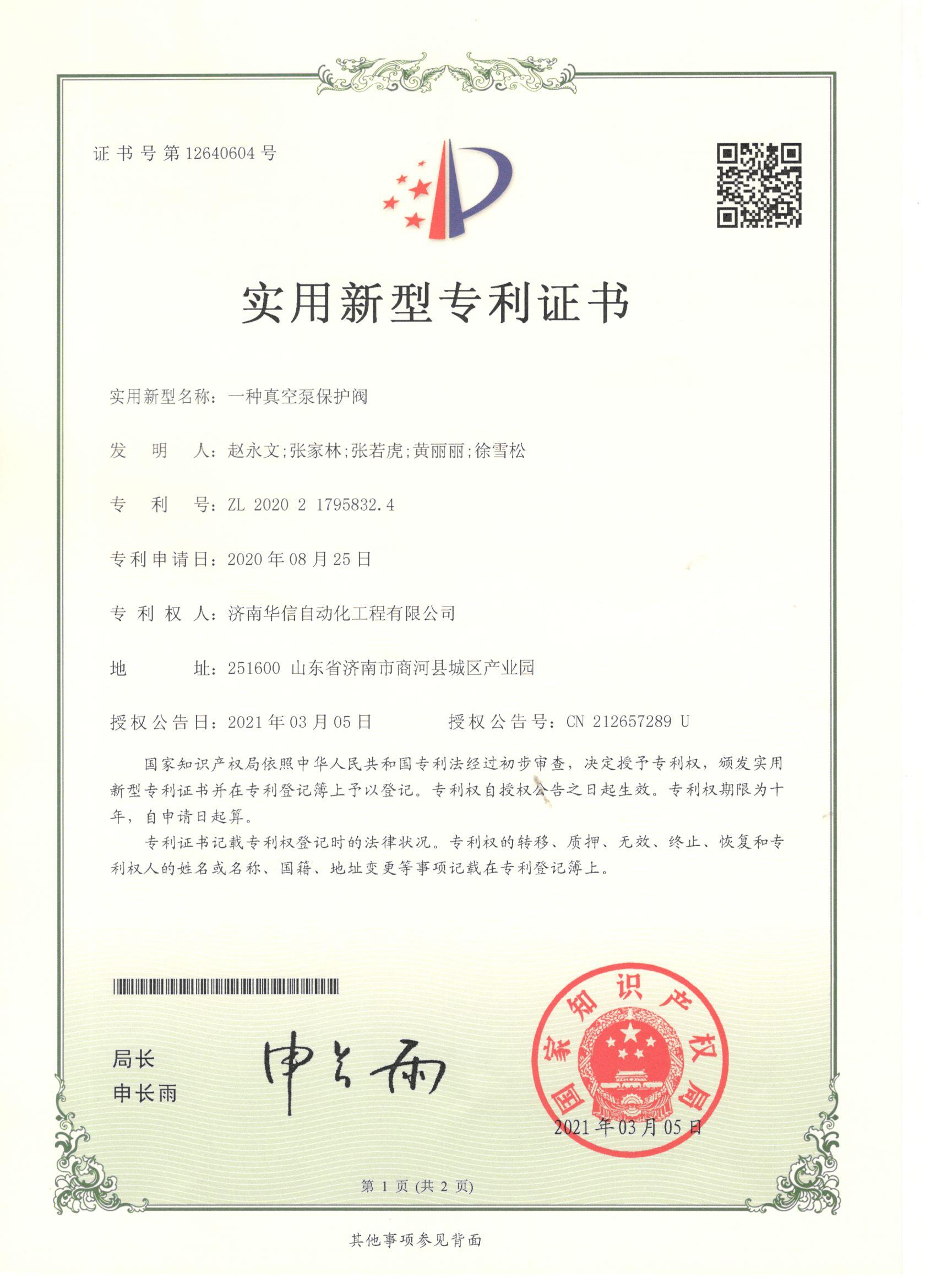 一种真空泵保护阀